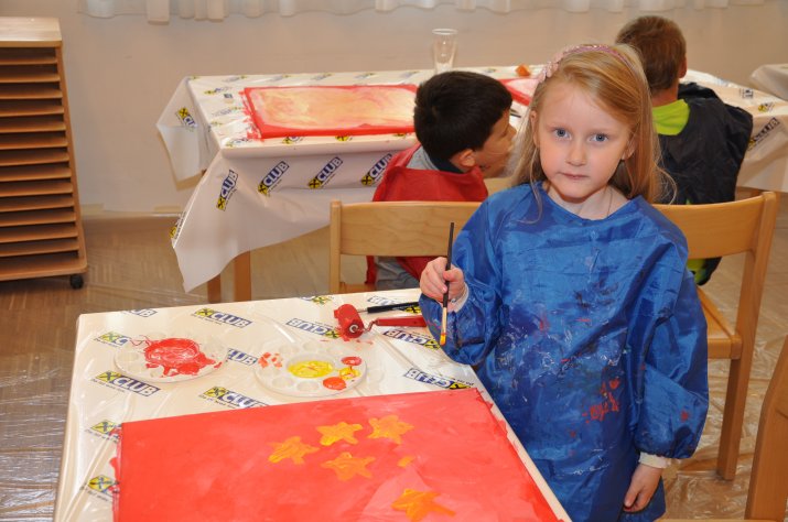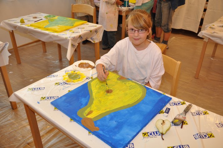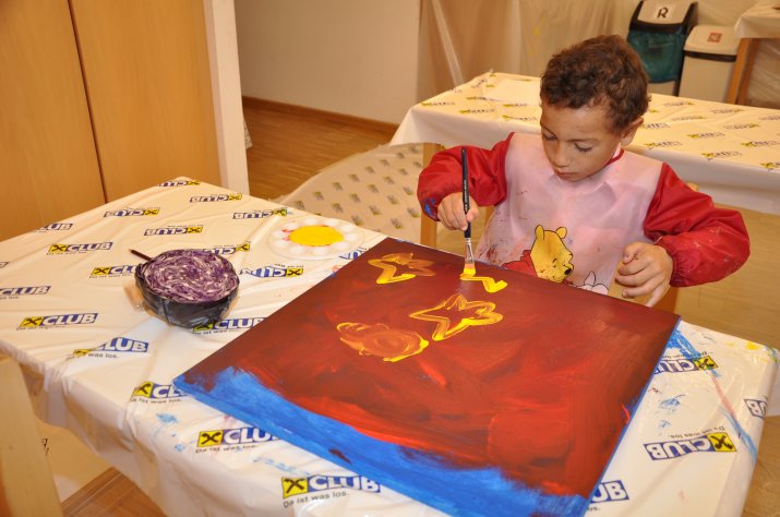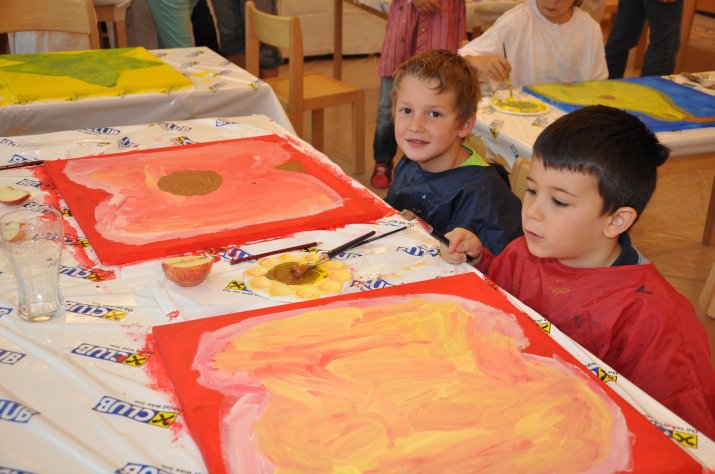 Auf Initiative von Hortpädagogin Petra Geacomelli fand bereits im Vorfeld ein großer Wettbewerb unter den Kindern statt, bei dem Ideen für die Wandgestaltung gesammelt wurden. Die Kinder bemalten heute mit Unterstützung der KünstlerInnen und Pädagoginnen große Leinwände und tragen so aktiv zur Gestaltung ihres Speiseraumes bei. Motive für die Bilder waren unterschiedlichste Früchte, wie Wassermelonen oder Birnen, die die Kinder kreativ mit Acrylfarben abmalten und nach Abschluss der Arbeiten auch gemeinsam verkosteten. „Dadurch können die Kinder die kreative Aktion mit allen Sinnen erleben“, so Bildungsreferent Vizebürgermeister Christoph Kaufmann im Rahmen des Besuchs im Schülerhort.