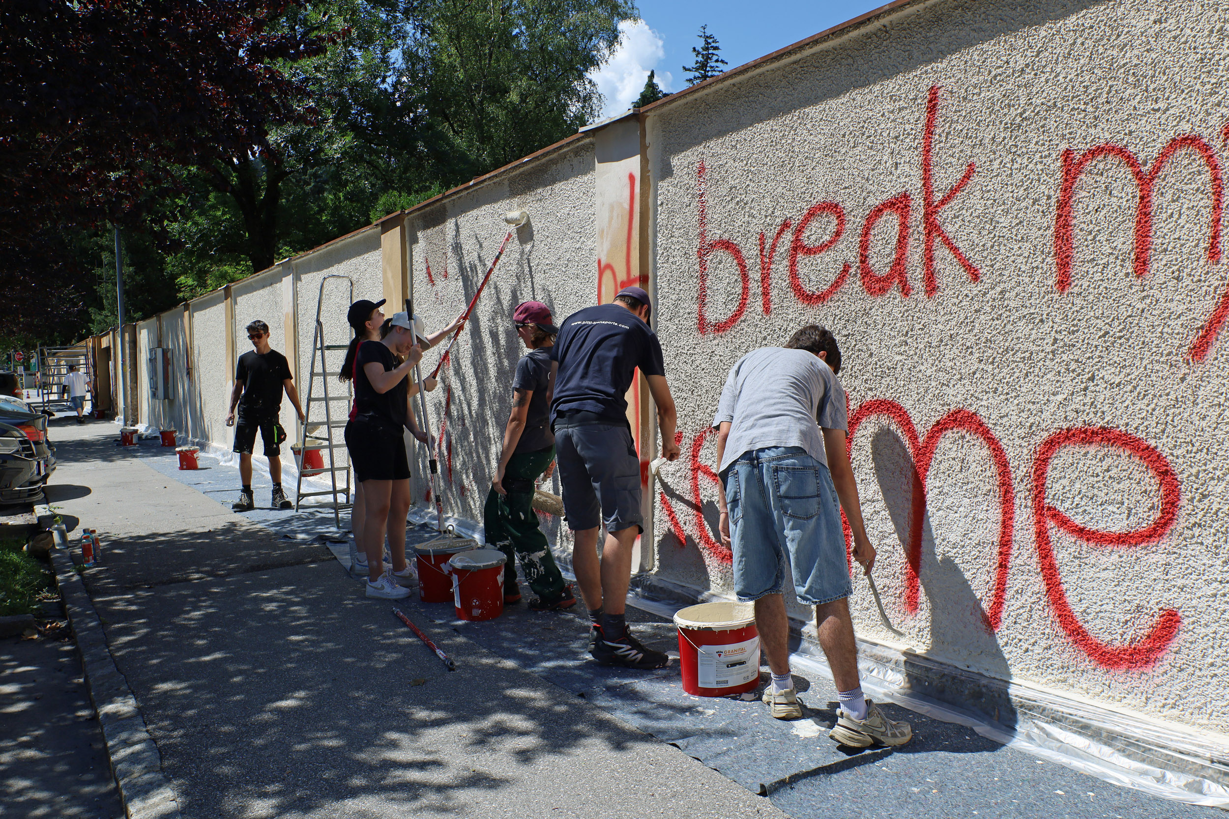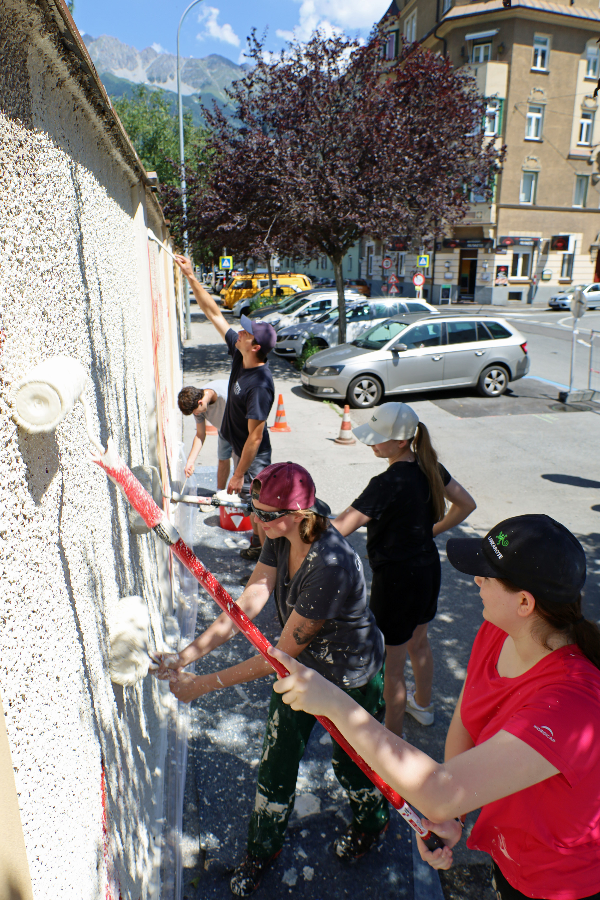 Immer wieder werden öffentliche Flächen, Mauern und Fassaden im Stadtgebiet illegal mit Schriftzügen beschmiert. Häufiges Ziel dieser Aktionen ist die Mauer des Westfriedhofs in Wilten. Bereits 2018 und im Vorjahr wurde einem Teil davon gemeinsam mit städtischen Lehrlingen ein frischer Anstrich verpasst. Diesmal halfen 14 städtische Lehrlinge an zwei Tagen Anfang Juli dabei, einen Teil westseitigen Mauer in der Fritz-Pregl-Straße zu reinigen und neu zu streichen.