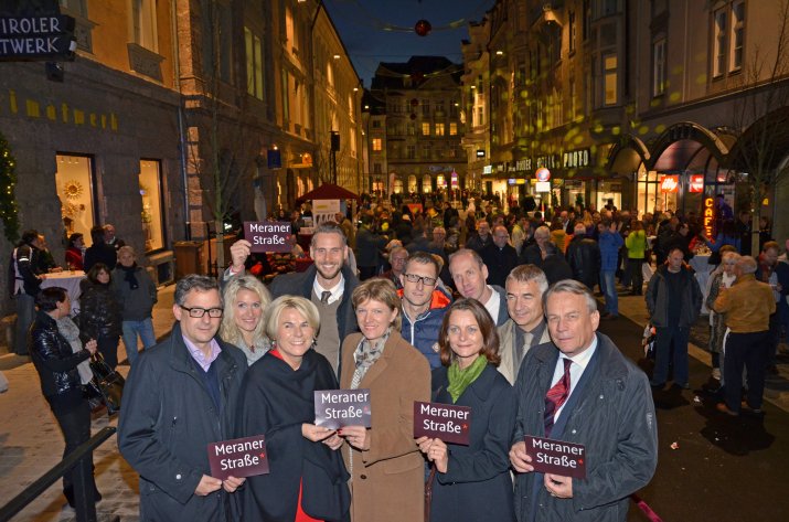 Am 7. November wurde die neu gestaltete Meraner Straße mit einem bunten, vom Stadtmarketing Innsbruck organisierten Fest eingeweiht, zudem Bürgermeisterin Mag.a Christine Oppitz-Plörer und Vizebürgermeisterin Mag.a Sonja Pitscheider die BürgerInnen herzlich begrüßten. Unter den Gästen befanden sich neben zahlreichen Mitgliedern des Stadtsenates und des Gemeinderates auch IKB-Vorstand DI Harald Schneider, KR Regina Stanger (Wirtschaftskammer Tirol), Bernhard Vettorazzi (Geschäftsführer Stadtmarketing Innsbruck) und Thomas Hudovernik (Obmann der Innenstadtkaufleute).