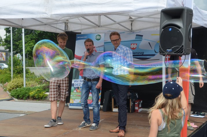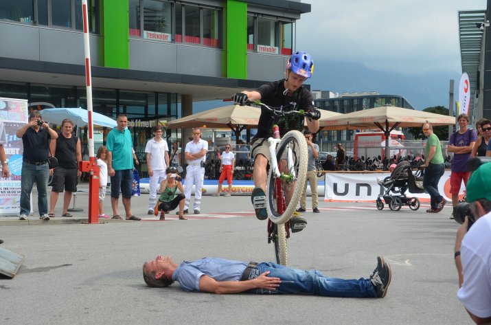 Bereits zum 22. Mal lud das Einkaufszentrum DEZ unter der Leitung von Center-Manager Helmut Larch zur Eröffnung des Kinderferienzuges. Heuer wurde das bunte Kinderfest gemeinsam mit der Sportunion organisiert – Bewegung stand dementsprechend bei vielen Stationen im Vordergrund. Neben einer Hüpfburg konnten die Kinder ihr Talent beim Slacklining zeigen, Speed-Tennis spielen oder an einer Mal-Station ihrer Kreativität freien Lauf lassen. Eine gesunde Jause sorgte für das leibliche Wohl. Einen besonderen Höhepunkt stellte die rasante Mountainbike-Show von Trial-Profi Tom Öhler dar.