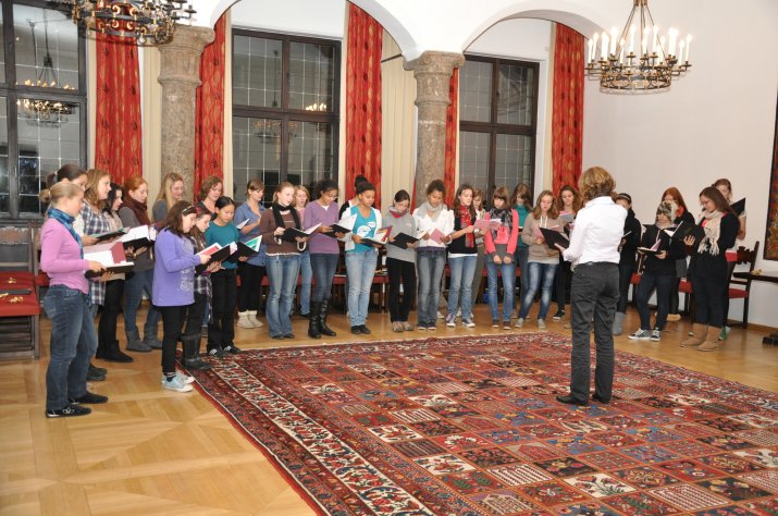 „Ihr seid der beste Beweis, dass die Partnerschaft zwischen unseren beiden Städten jung und lebendig bleibt“, so GRin Keuschnigg, die die Mädchen zwischen 11 und 19 Jahren mit einem kleinen Gastgeschenk und einer Schokolade-Schindel des Goldenen Dachls überraschte. „Wir freuen uns, dass wir in dieser wunderschönen Stadt zu Gast sein dürfen“, erklärte Chorleiterin Martina van Lengerich. „Innsbruck, ich muss dich lassen“, war das Lied, mit dem die jungen Sängerinnen abschließend eine wunderschöne Hörprobe ihres Könnens ertönen ließen.