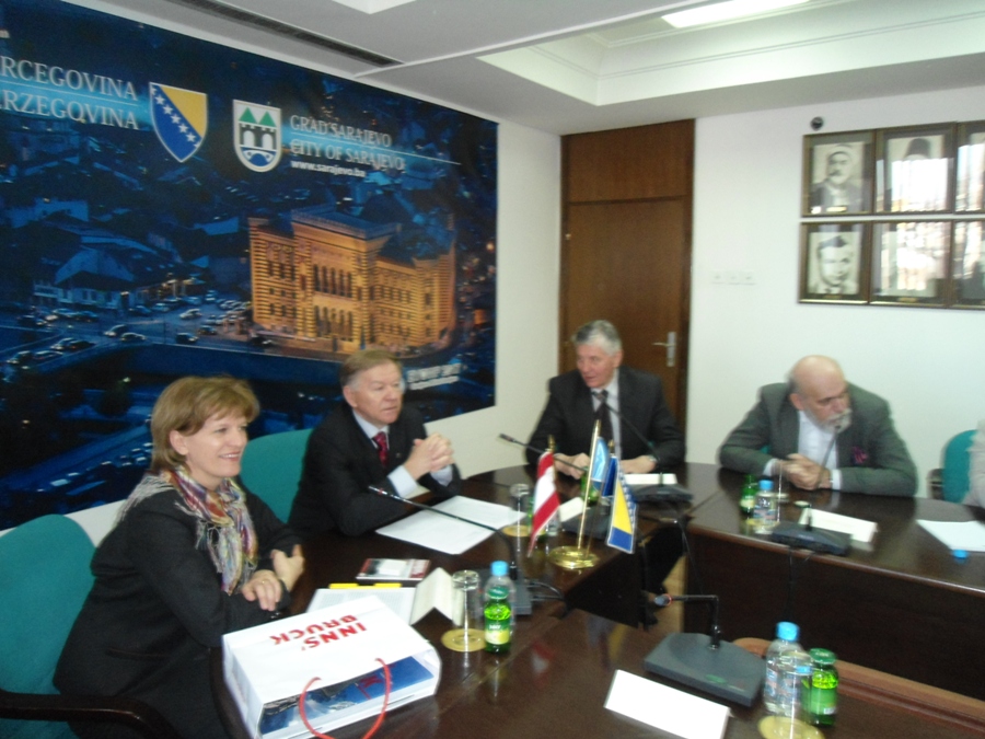Neben einer Führung durch Sarajevo, fand beispielsweise auch ein BürgermeisterInnentreffen statt, bei dem sich Innsbrucks Bürgermeisterin mit ihrem Amtskollegen Prof. Dr. Ivo Komšić zu Gesprächen und zum Wissensaustausch traf.