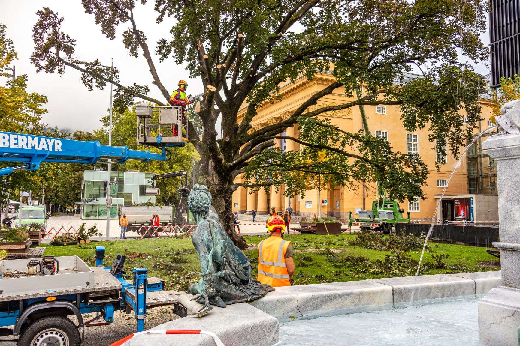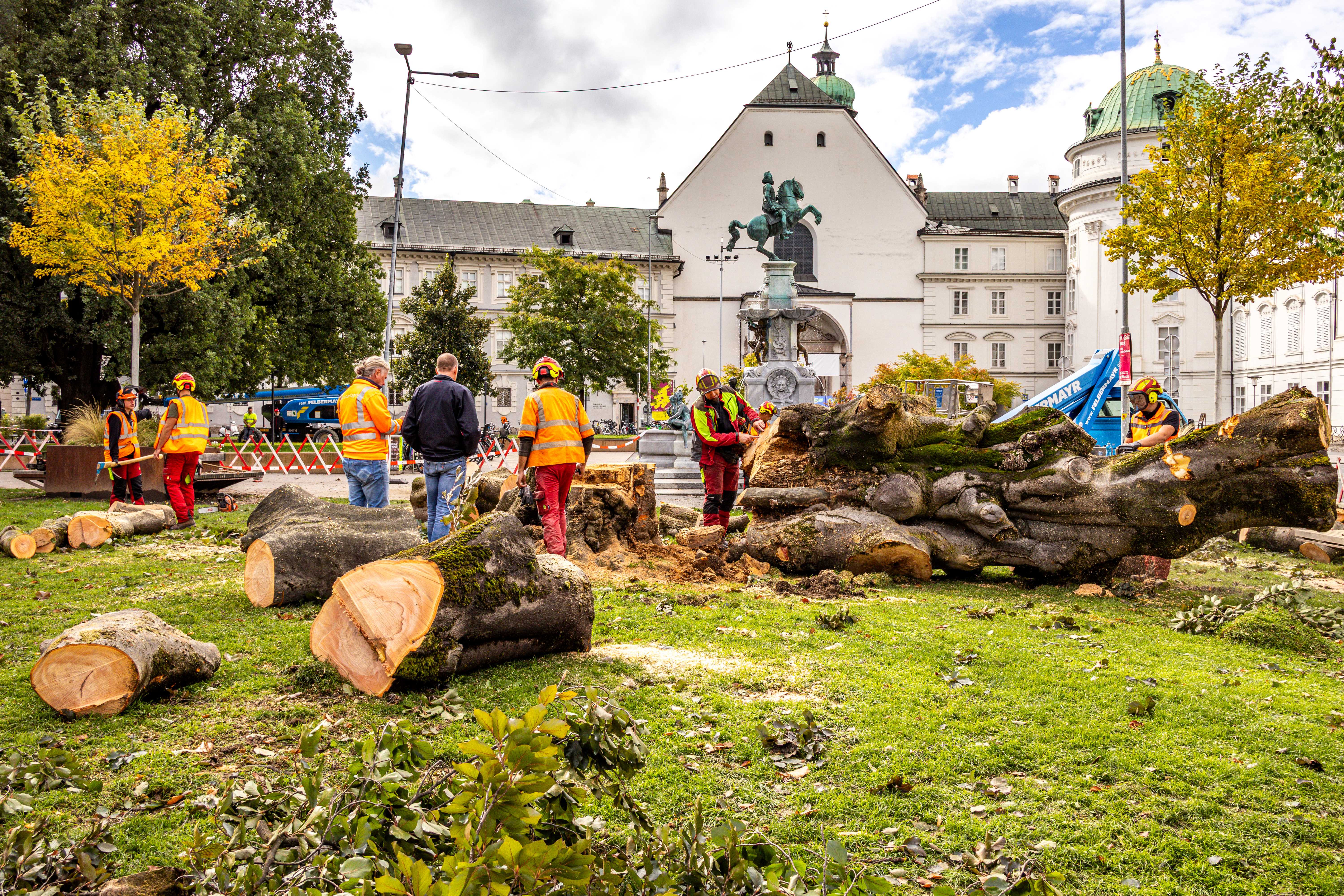 Die Stadt Innsbruck hat in den vergangenen Jahren alles unternommen, um die 120 Jahre alte Blutbuche vor dem Haus der Musik zu erhalten. Unter anderem sollten gezielte Bewässerung und Bodenverbesserung mit Mikroorganismen lebensverlängernd wirken. Zum Erhalt der Stand- und Bruchsicherheit wurden zudem mehrere Kronensicherungen an seitlichen Starkästen angebracht und abgestorbene Äste regelmäßig entfernt. Nun haben die jüngsten Begutachtungen der stadtinternen und externen Sachverständigen ergeben, dass sich die bereits im Jahr 2021 festgestellte holzzerstörende Pilzerkrankung massiv ausgebreitet hat.
