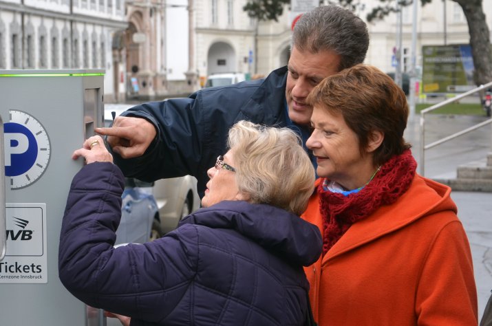 Seit rund einem Jahr stehen im Innenstadtbereich von Innsbruck 69 neue Parkscheinautomaten. Um gerade älteren MitbürgerInnen die Bedienweise der neuen Geräte zu erleichtern, initiierte die Stadt Innsbruck vor Ort Schulungen.