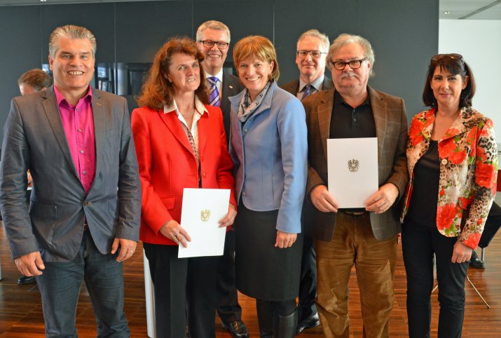 „Es ist mittlerweile zu einer liebgewonnenen Tradition geworden, dass die Stadt Innsbruck zweimal im Jahr verdiente Mitarbeiterinnen und Mitarbeiter im Rahmen einer Feier ehrt“, waren sich Bürgermeisterin Oppitz-Plörer, Magistratsdirektor Holas, Personalamtsleiter Neu sowie Personalvertretungsobmann Peintner bei der Dekretverleihung einig.