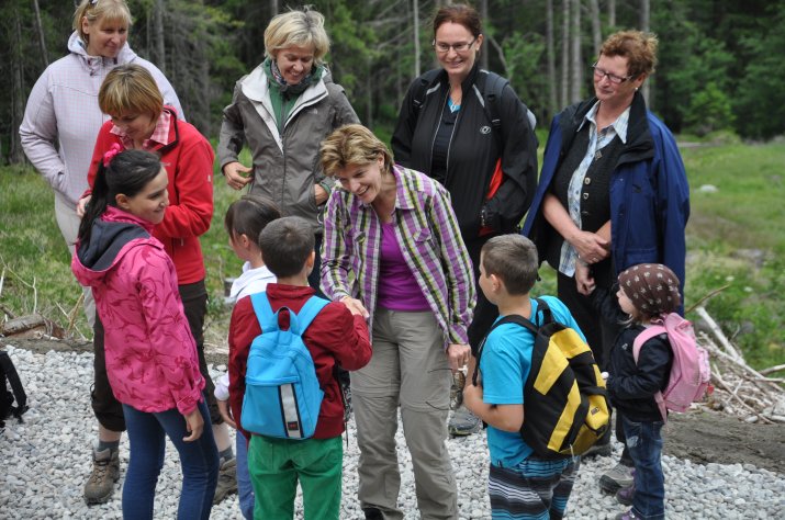 Zahlreiche weitere Mitwirkende am Projekt hatten sich eingefunden, darunter der Aldranser Bürgermeister Adolf Donnemiller, Mag. Robert Gschleiner (Leiter des Wasserwerks) und die Mitarbeiter der IKB sowie Funktionäre der Agrargemeinschaft Amraser Hochwald und die Eltern der VolksschülerInnen.