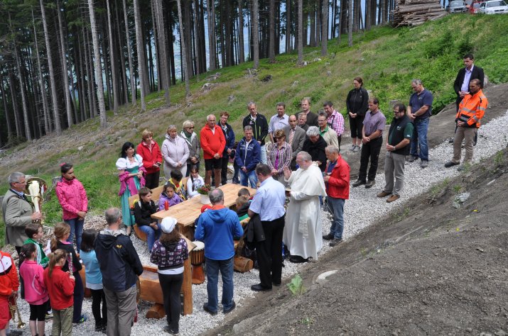 Ein neuer Trinkwasserbrunnen erfrischt ab sofort die Wandernden im Amraser Hochwald. Am 3. Juli waren Bürgermeisterin Mag.a Christine Oppitz-Plörer, Forstreferent Vizebürgermeister Christoph Kaufmann, Amtsvorstand DI Andreas Wildauer (Land- und Forstwirtschaft) und Johann Zimmermann (Obmann Agrargemeinschaft Amraser Hochwald) vor Ort, um der Einweihung und Segnung des neuen Rastplatzes durch den „Hochwaldkurat“ Diakon Nikolaus Albrecht beizuwohnen.