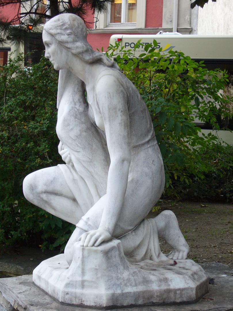 Diese auch als „Mädchen mit dem Krug“ bezeichnete Figur, wohl zwischen 1940 und 1944 von Hans Plangger geschaffen, lässt seit 1953 am Haydnplatz im Saggen Wasser aus einer Urne plätschern. Zur Entstehung und Aufstellung der „Quellnymphe“ fehlen bisher Informationen.