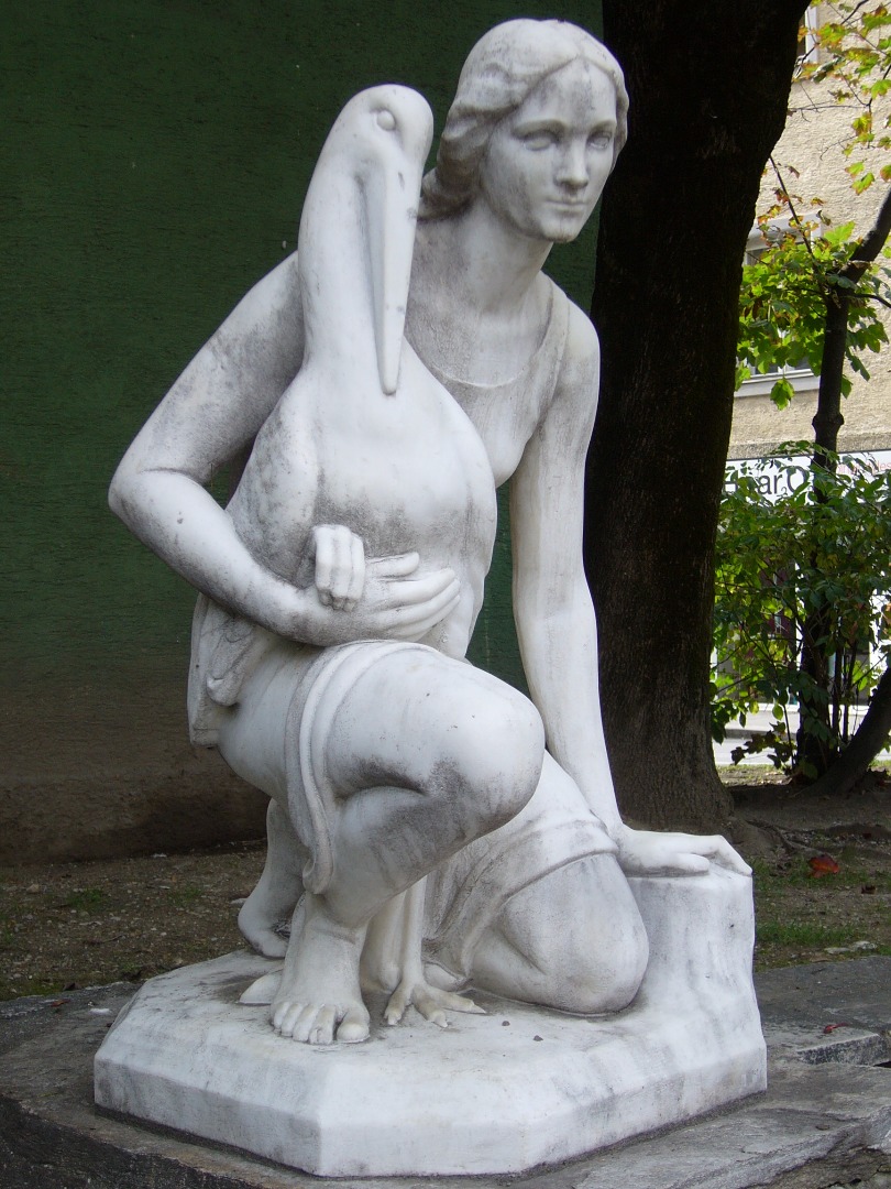 Das „Mädchen mit Storch“ hingegen blickt in die Ferne, vielleicht in die eigene Zukunft. Der „zutrauliche“ Storch könnte in dieser als Adebar, der in der germanischen Sage als Lebensbringer gilt, eine „offiziell gewünschte“ Rolle spielen. Abgesehen davon kann der Schnabel des Vogels durchaus auch als Phallus-Symbol interpretiert werden.