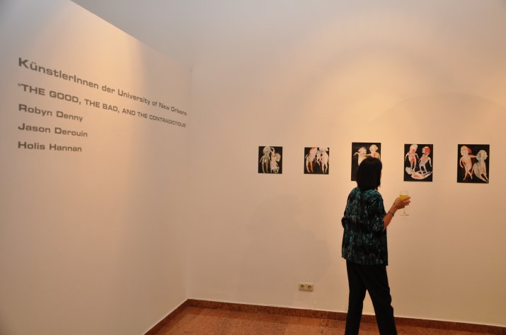 Am Abend des 4. Juli wurde die Ausstellung von Kulturstadträtin Univ.-Prof. Dr. Patrizia Moser gemeinsam mit Galerieleiter Horst Burmann in Anwesenheit der Künstler Jason Derouin und Holis Hannan eröffnet. Zur Vernissage waren weiteres Dr. Joe M. King (Acting Chancellor der Universität New Orleans), Prof. Dr. Gordon H. „Nick“ Mueller (Initiator der International Summer School), Alea Merlock-Cot (Assistant Vice-Chancellor der Universität New Orleans) und Gertraud Griessner (Center Austria in New Orleans) aus den USA angereist
