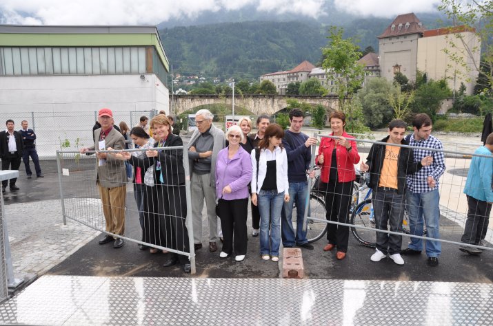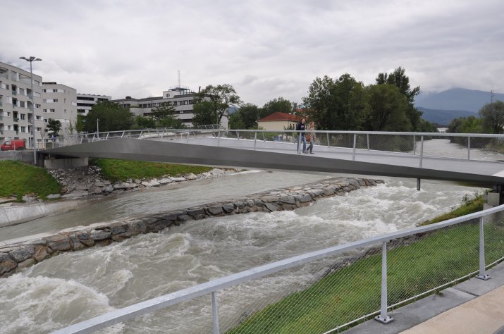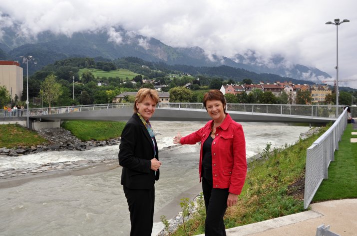 (RMS) Im Rahmen des Gesamtprojektes für den Hochwasserschutz an Sill und Inn wurde an der neu gestalteten Silleinmündung eine moderne Rad- und Fußwegbrücke errichtet, die die Lücken im Wegenetz entlang der Flusspromenaden schließt. Am 15. Juli wurde in Anwesenheit von Bürgermeisterin Mag.a Christine Oppitz-Plörer, Stadträtin Dr. Marie-Luise Pokorny-Reitter und Ing. Gerhard Dendl (Projektmanagement) die Tiflis-Brücke offiziell für den Verkehr freigegeben.