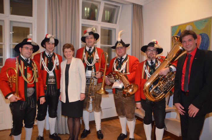 Weihnachtsbläser der Stadtmusikkapelle Wilten verbreiteten am 19. Dezember vorweihnachtliche Stimmung im Innsbrucker Rathaus: „Das ist eine liebgewonnene Tradition“, bedankte sich die Bürgermeisterin für das Weihnachtsständchen im Stadtsenatssitzungszimmer.
