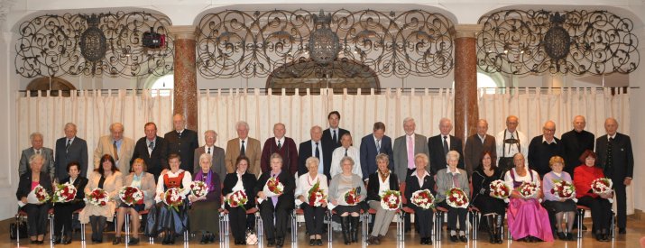 Gratulation an fünf Diamantene und vierzehn Goldene Ehepaare.