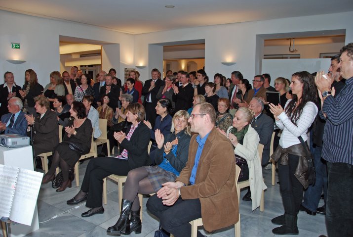 Die Foyer-Räumlichkeiten der Hofburg waren bei der Vernissage bis zum letzten (Steh-)Platz gefüllt. „Hausherrin“ Amtsdirektorin Waltraud Schreilechner konnte neben den ProjektteilnehmerInnen u. a. den Botschafter von Bosnien und Herzegovina Haris Hrle mit dem zukünftigen Honorarkonsul Klaus Erler, Bürgermeisterin Mag.a Christine Oppitz-Plörer, Vizebürgermeister Christoph Kaufmann, Kulturstadträtin Univ.-Prof. Dr. Patrizia Moser, mehrere GemeinderätInnen, Abteilungsleiterin Mag.a Birgit Neu, Kulturamtsleiter Horst Burmann, den Landesschulinspektor für das technische und gewerbliche Schulwesen HR Dr. Kurt Falschlunger sowie RR Reinhard Aichner vom Büro für Internationale Beziehungen der Universität Innsbruck begrüßen.