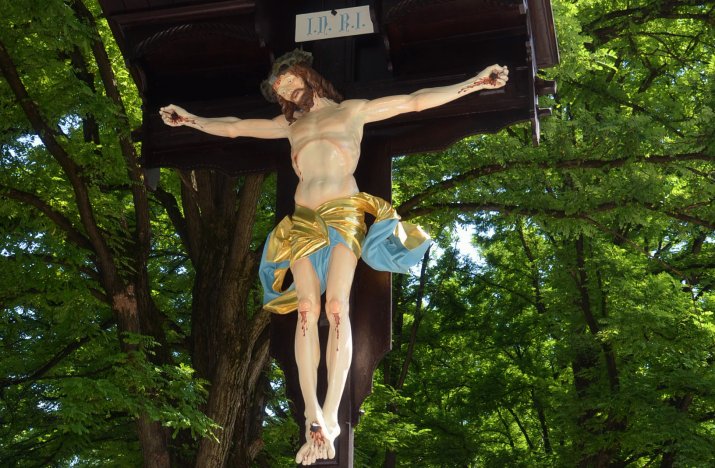 Das Wegkreuz trägt eine über 2 Meter große Christusfigur und wurde um 1900 vom Künstler Alois Winkler geschaffen. Alterserscheinungen und Verwitterung machten eine grundlegende Sanierung notwendig.