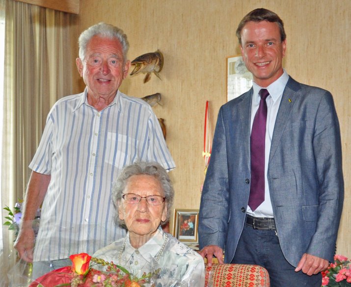 Anlässlich ihrer Eisernen Hochzeit besuchte Vizebürgermeister Christoph Kaufmann Leopoldine und Franz Hansel am 17. Juli in ihrer Wohnung im Olympisches Dorf. Mit einem Blumenstrauß und einem edlen Tropfen Wein überbrachte er dem Jubelpaar Glückwünsche im Namen der Stadt Innsbruck.