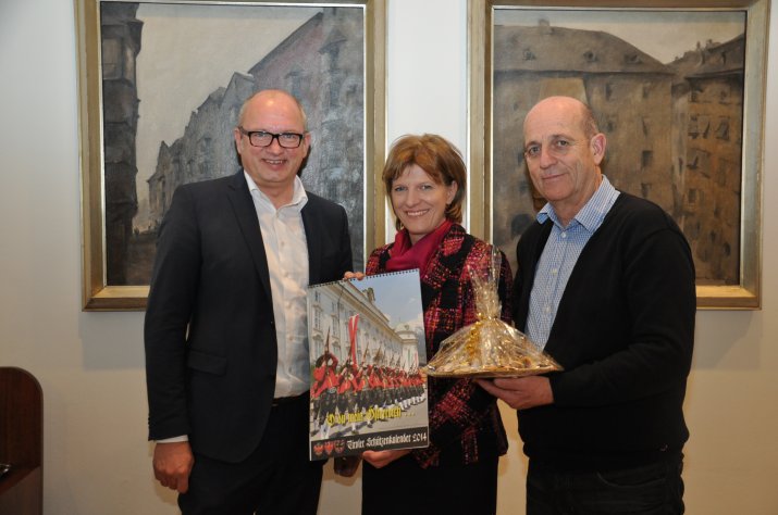 Mit Freuden überreichten der Landeskommandant der Tiroler Schützen Mag. Fritz Tiefenthaler und der Kommandant des Schützenviertels Tirol-Mitte Christian Meischl am 18. Dezember Bürgermeisterin Oppitz-Plörer einen Jahreskalender der Tiroler Schützen sowie köstliche Weihnachtsbäckerei. „Jedes Jahr freue ich mich ganz besonders auf den traditionellen Weihnachtsbesuch der Tiroler Schützen“, so die Bürgermeisterin.